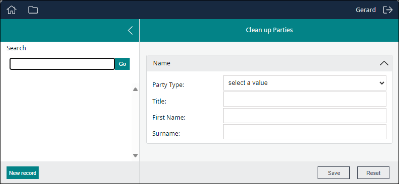 The following Form could be used to create a new record by completing the Name fields and clicking Save: