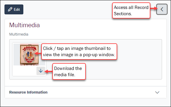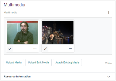 A record is created in the Multimedia module for each resource and attached to the current record.