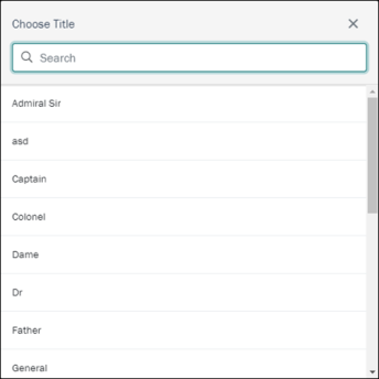 - If more than one value matches, a popup displays with a list filtered to potential matches. Select a value to enter it in the field: