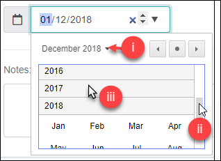 beside the current month & year to reveal a scrollable list of years. - Scroll back / forwards to another year.