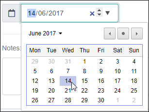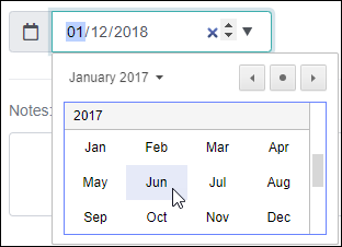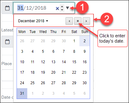 As we see, when the cursor is in a date field, several tools become available offering alternative ways to enter a date.