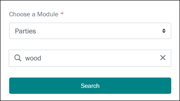 The management of a collection can involve a vast amount of information about collection objects / items, people and organizations, events, administration and more. This information is stored in modules (database tables) that are specific to the type of information: for instance, the Parties module stores information about people and organizations involved in some way with your collection. from the drop list: - Enter your search term in the Search field: