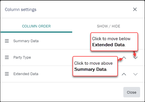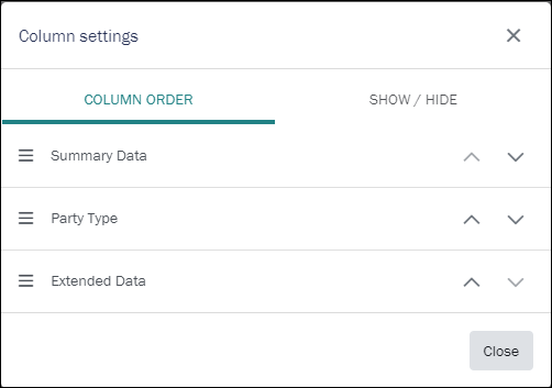 Grid settings allow you to modify the order of columns and determine which columns display: