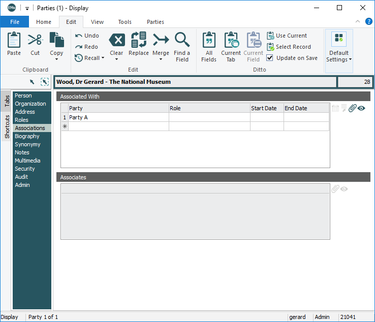 Let's say Nick Margiolakis now organizes another event. To record this in EMu you would: