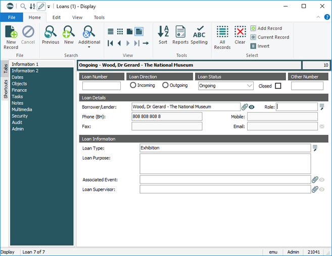 | Outgoing | The loan is for research purposes. | 15-Jan-06 |