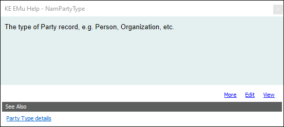 Here we see the Field Level help for the Party Type field in the Parties module.