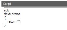 An empty perl script subroutine called fieldFormat is added to the Script field when a Field Definition record is created: