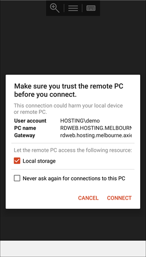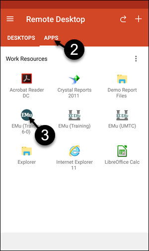 You access your hosted EMu service with the Microsoft Remote desktop app installed on your mobile device (Android or iOS).