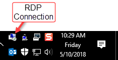 When you connect remotely, an RDP icon will display in your PC's System Tray (typically bottom right corner of your monitor):