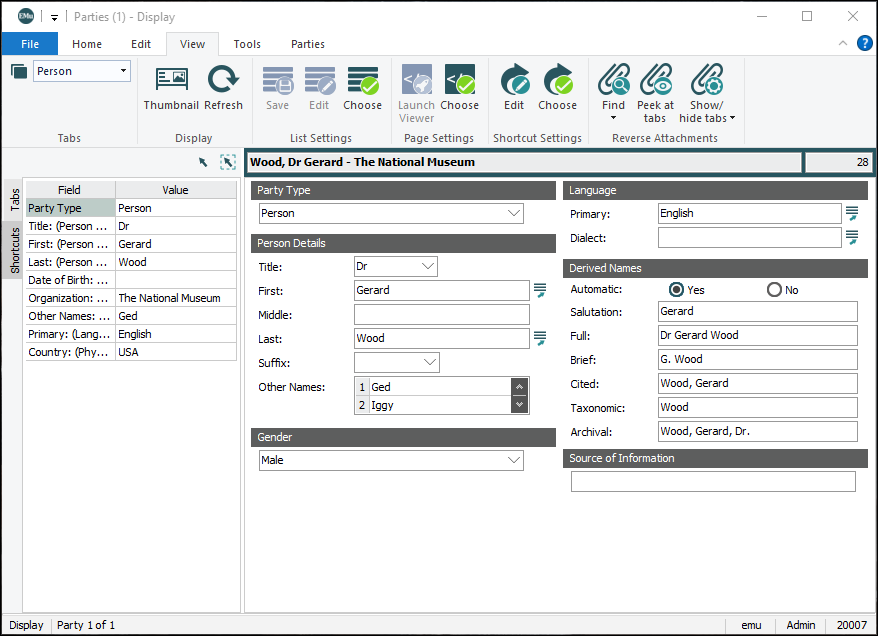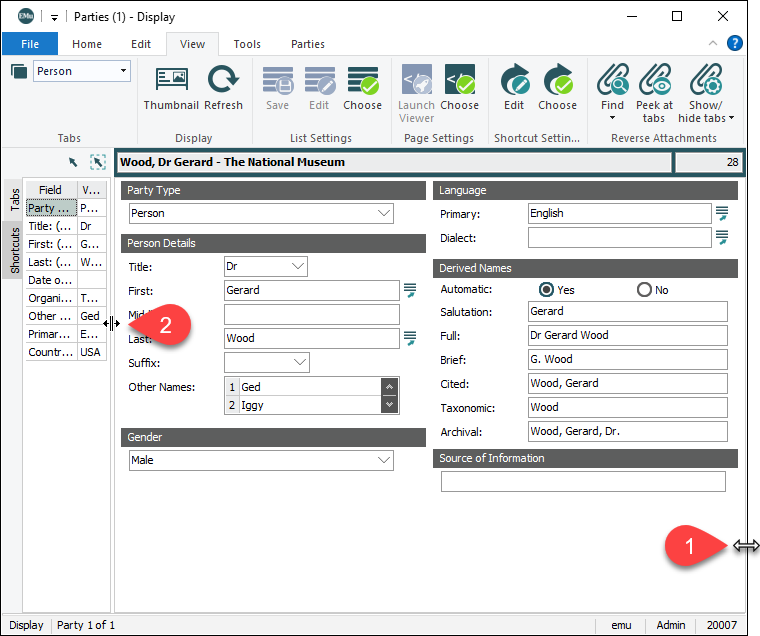 It is possible to increase the width of the Tabs / Shortcuts pane. This is useful when displaying Shortcuts as it will allow you to view the field name and value as you navigate between records: