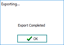 A status box displays the export process and indicates when the export is complete: