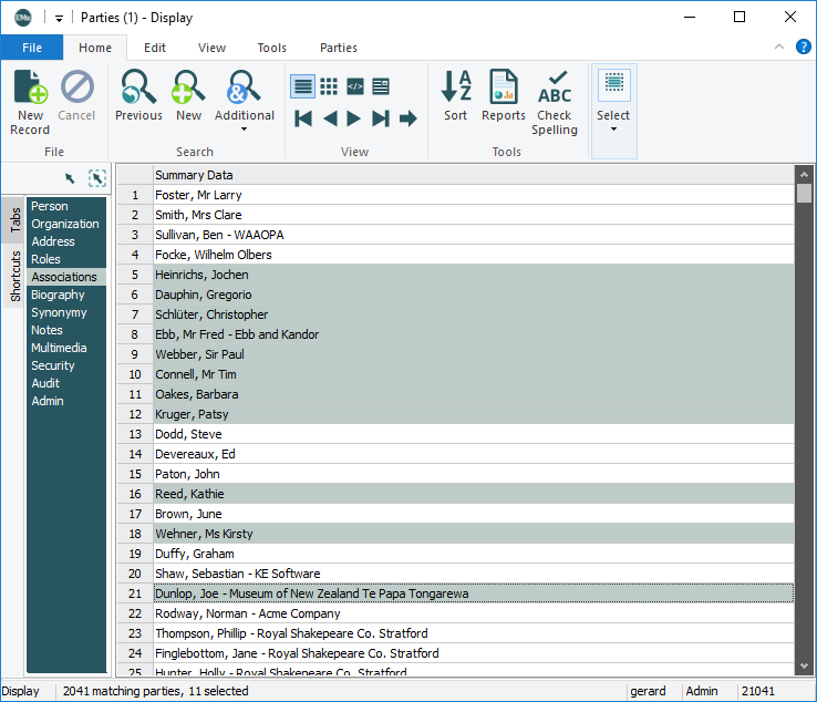 You can select records in List View, Contact Sheet View and Details view. Commands are available in all views on the Home tab of the Ribbon:
