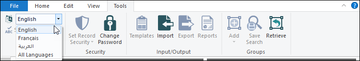 This is achieved by using the Language drop list on the Tools tab of the Ribbon of any module:
