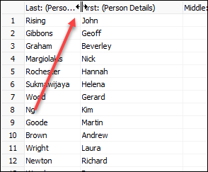 - Hold the mouse down over a column header edge until the double arrows display: