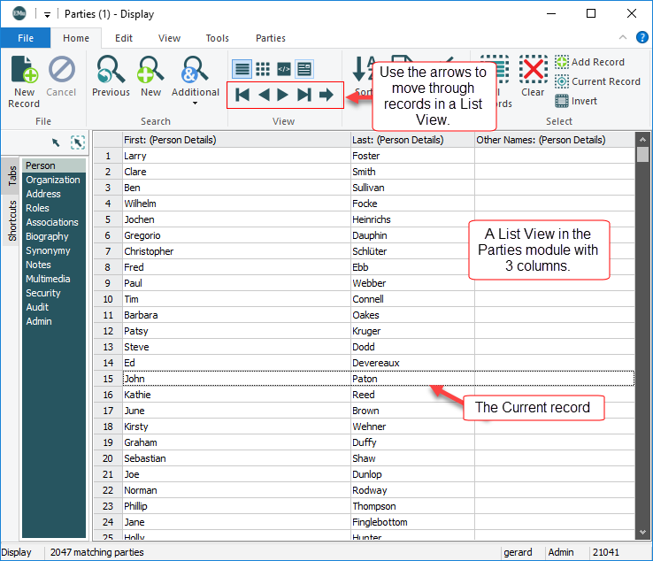 It is possible to create and edit your own List View, specifying which fields to display, and to select which List View to use to display records. You can also change the order of columns and resize them. It is also a simple matter to copy and paste data out of List View.