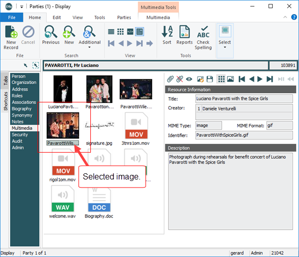 - If there is more than one image on the Multimedia tab of the Parties record, select the image that you want to print: