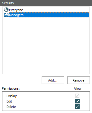 - Add group Managers to the Security box on the Security tab and give the group Edit and Delete permissions.