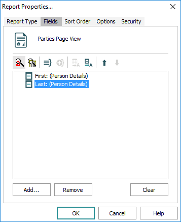 - If required, select the Sort Order, Options and Security tabs in the Report Properties box to configure the Report.