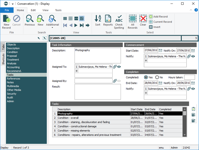 In many modules it is possible to schedule a list of tasks related to a record. Task details include the: