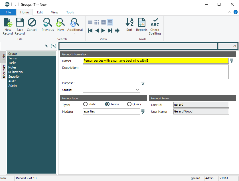 Note: The creator of the group is automatically identified as its owner in the Group Owner fields.