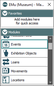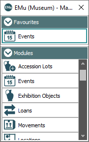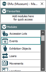 Note: Only modules you are authorized to access will display in the Command Centre. A complete list of EMu modules can be found here.