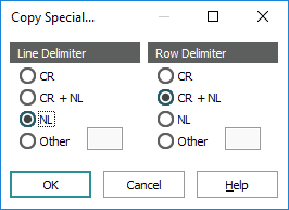 • Microsoft Excel on a Windows platform expects a Newline (NL).