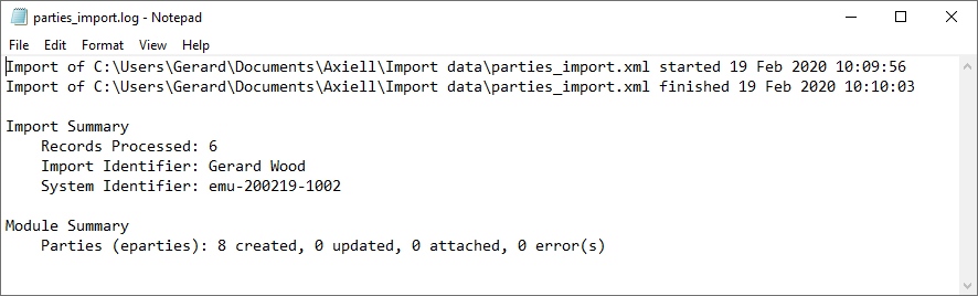 Note: Records in the import data file are processed sequentially: if record 5 attaches to record 6, no attachment will be made during the import as record 6 has not been created when record 5 is processed.