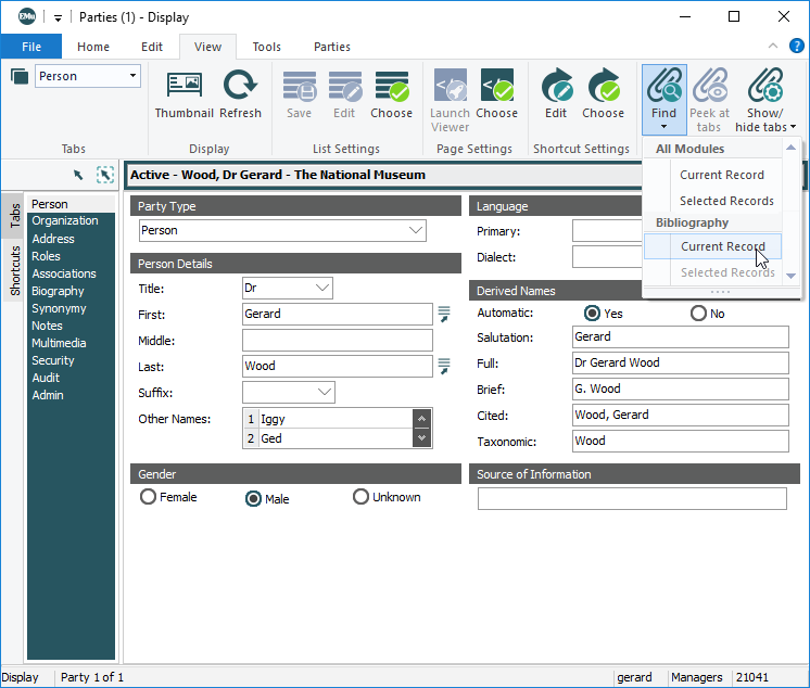 is the back-end name of a table that attaches to table. The name of this table will be added as a sub entry to the Find option on the View tab of the Ribbon.