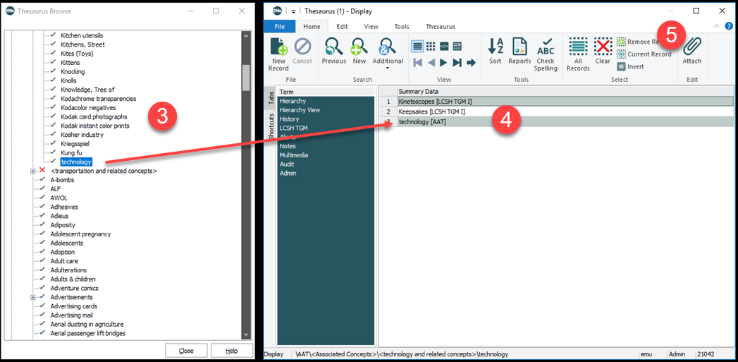Candidate A check is performed to see if a term exists in the Thesaurus; if not, the Thesaurus opens in New mode allowing the term to be added.