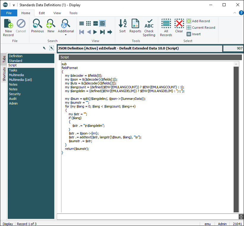 EMu 10 includes the option to use Standards module definitions to generate the Summary Data and Extended Data in a module, or system-wide.