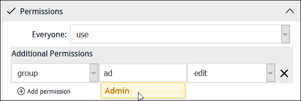 - Begin keying a user or group name in the second field and select a name from the list of suggestions that will display:
