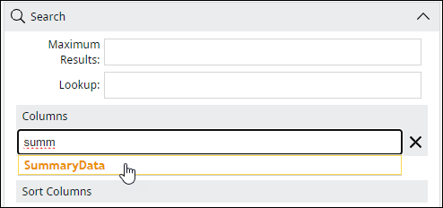 to sort the result set alphabetically or numerically.Start keying a field name in the Sort Columns field and select the required field when it displays.