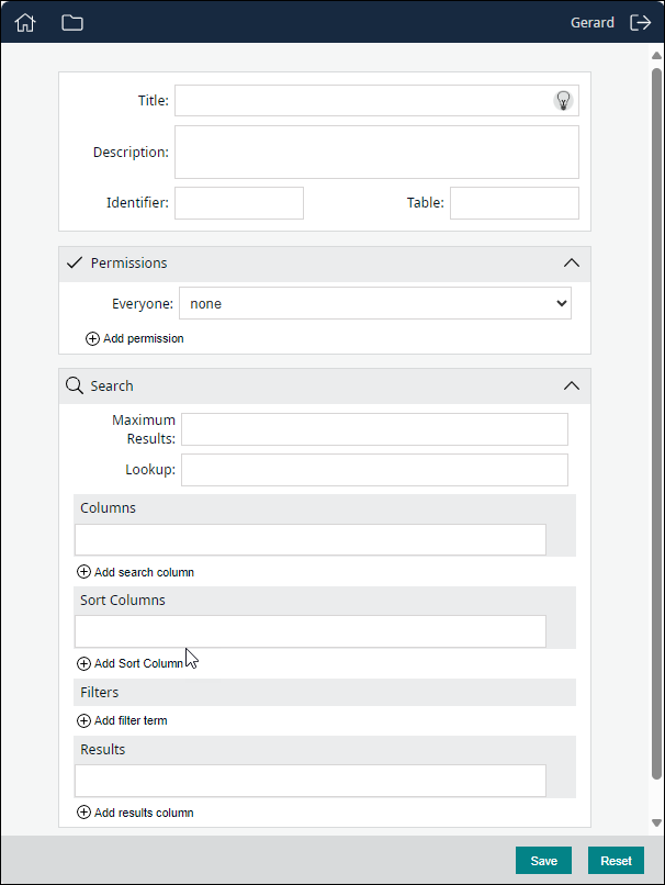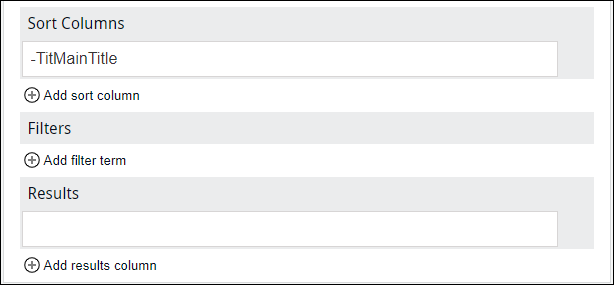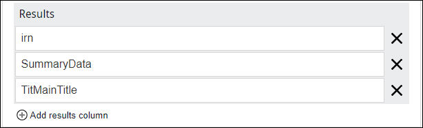to specify which column(s) of data will display when search results are returned.Start keying a field name in the Results field, and select the required field when it displays. In this example we add three fields (they will display in the order in which they are added):
