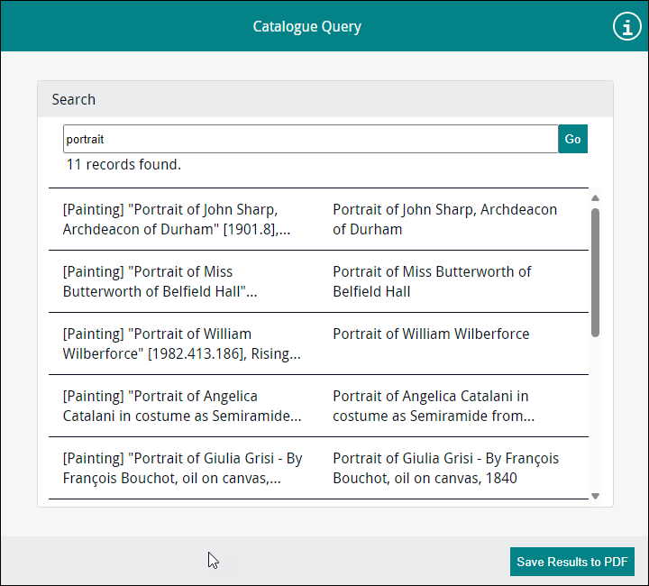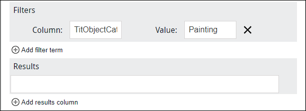 For example, if we only wanted to search Catalogue records for paintings, we could specify that only records where Object category =