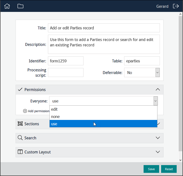 Here you configure a Query page, assign permissions to users (specify who can use this specific Query page; who can modify it).