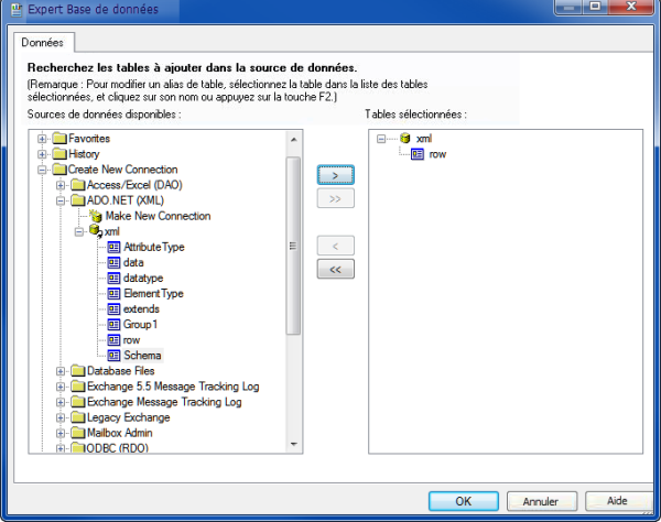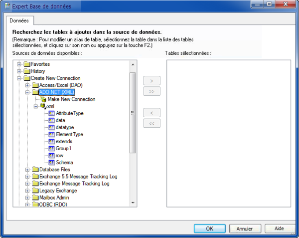 - Développez Créer une nouvelle connexion puis développez ADO.NET (XML).