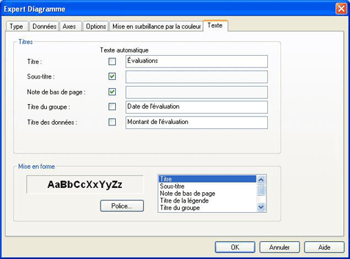 L’Expert Diagramme est utilisé pour insérer ou modifier un diagramme.