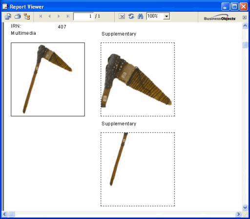 Le rapport ci-dessous montre un enregistrement avec une image Multimédia et deux images supplémentaires associées. Afin de produire cette sortie les options suivantes ont été sélectionnées :