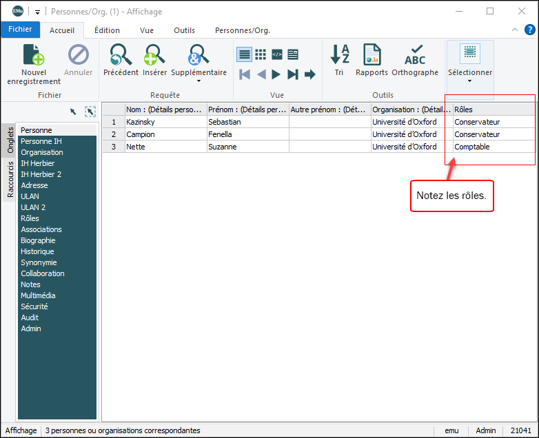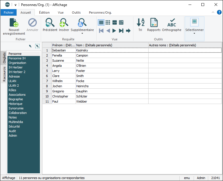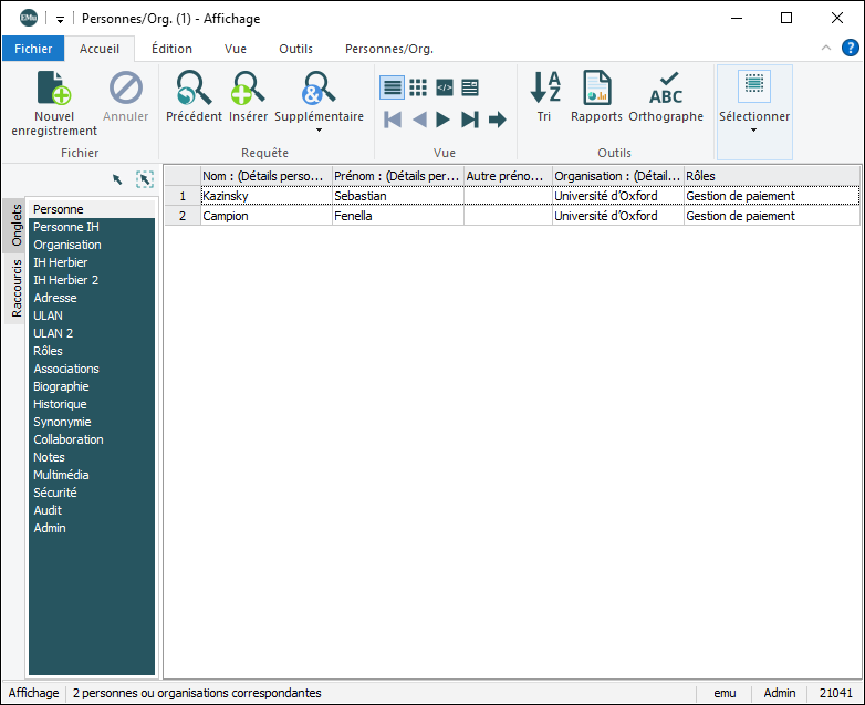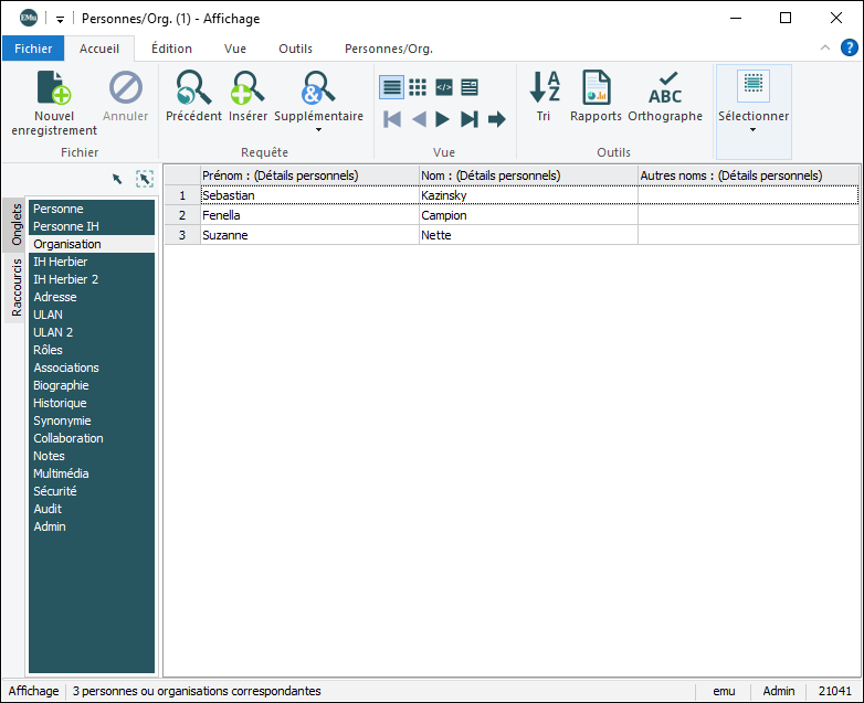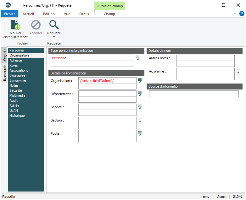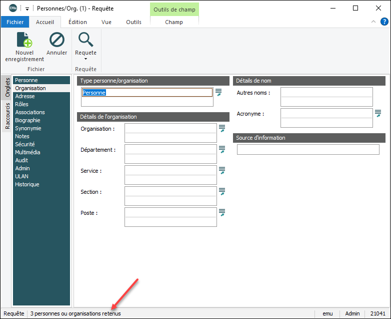 L’ensemble d'enregistrements est ajusté en fonction de l'option sélectionnée pour la requête supplémentaire.