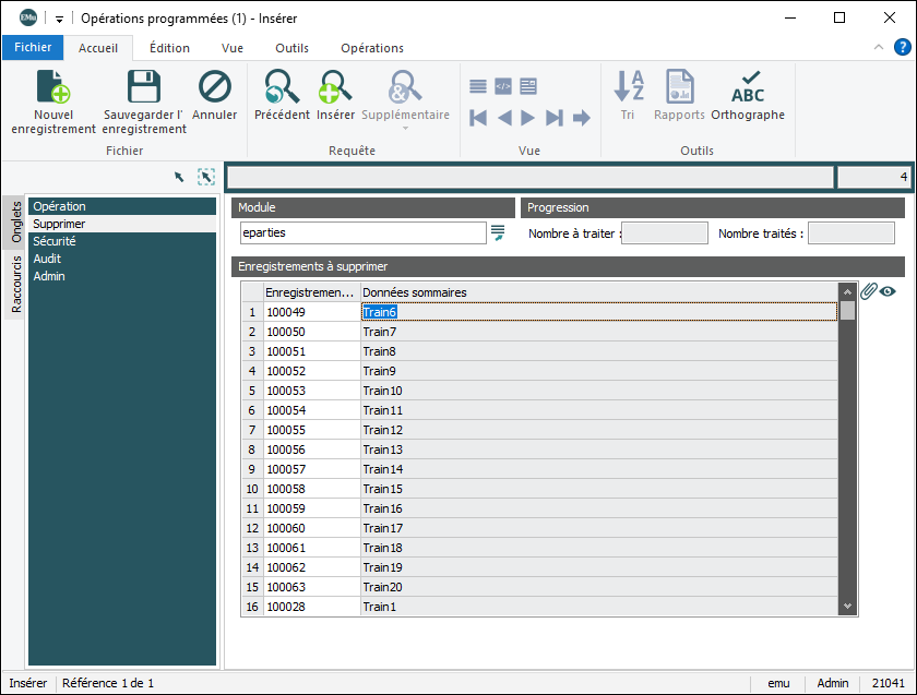 Le ou les enregistrements sont ajoutés à la table Enregistrements à supprimer du module Opérations programmées :