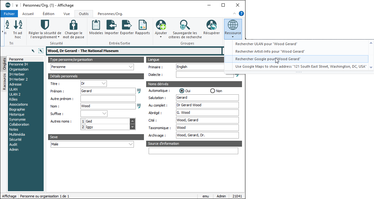 - Chercher sur Internet en utilisant les détails d'un enregistrement (génération dynamique de recherches d'URL).
