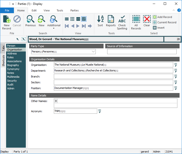 Cette entrée affiche les délimiteurs dans les champs vides pour les utilisateurs du groupe Document :