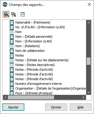 5. Dans l'onglet Champs, cliquez sur Ajouter pour afficher la boîte Champs du rapport.