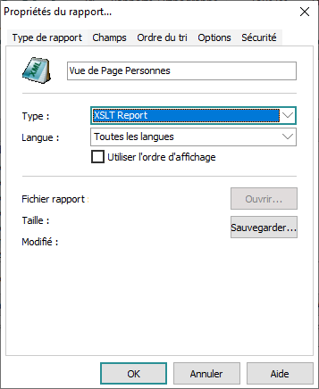 - Sur l'onglet Type de rapport, cliquer sur Sauvegarder.