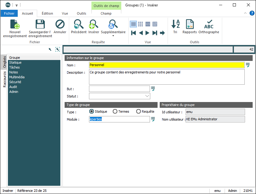 Dans le module Groupes, vous pouvez effectuer les opérations suivantes :