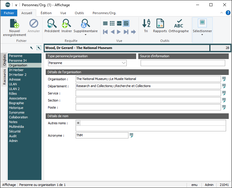 Dans un environnement multilingue, cette entrée spécifie également une liste des langues prises en charge et l'ordre dans lequel les données de chaque langue sont stockées dans un champ de la base de données (par exemple, anglais, allemand, puis français). Cet ordre de stockage peut différer de l'ordre dans lequel les données de chaque langue s'affichent dans EMu (par exemple, français, allemand, puis anglais).