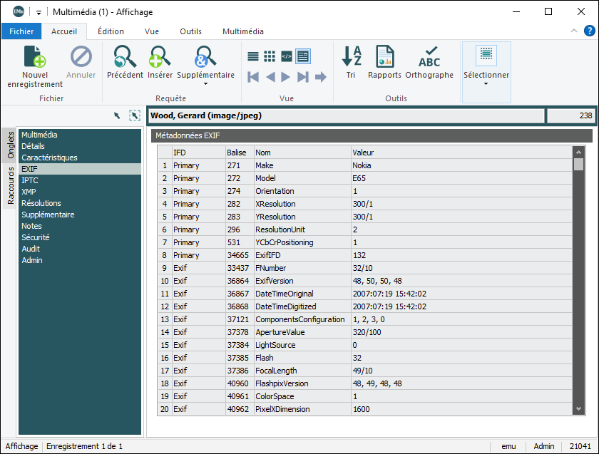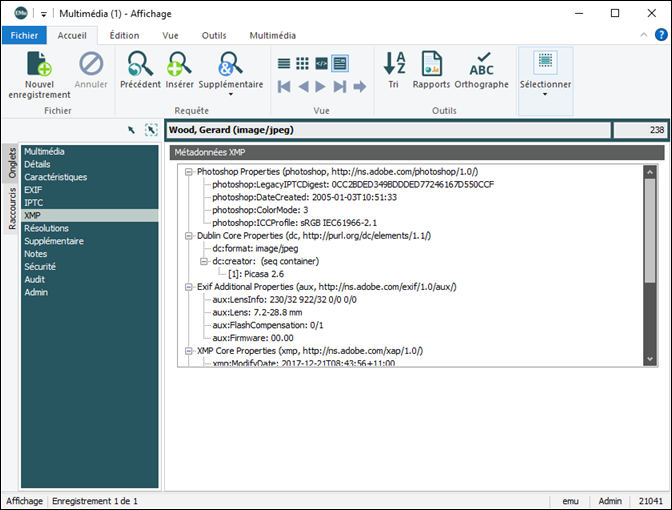 EMu prend en charge de nombreux formats image, audio et vidéo, ainsi que les standards de métadonnées EXIF, IPTC et XMP.