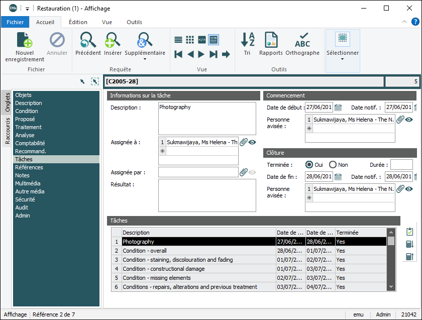 Dans de nombreux modules, il est possible de programmer une liste de tâches liée à un enregistrement. Les détails des tâches incluent :