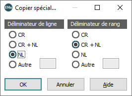 Note: Sélectionner un de ces boutons radio permet de placer le délimiteur approprié à la fin d'une ligne ou d'un paragraphe.
