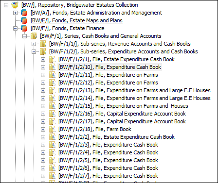Par défaut, les enregistrements de la hiérarchie Archives sont triés par ordre alphabétique :